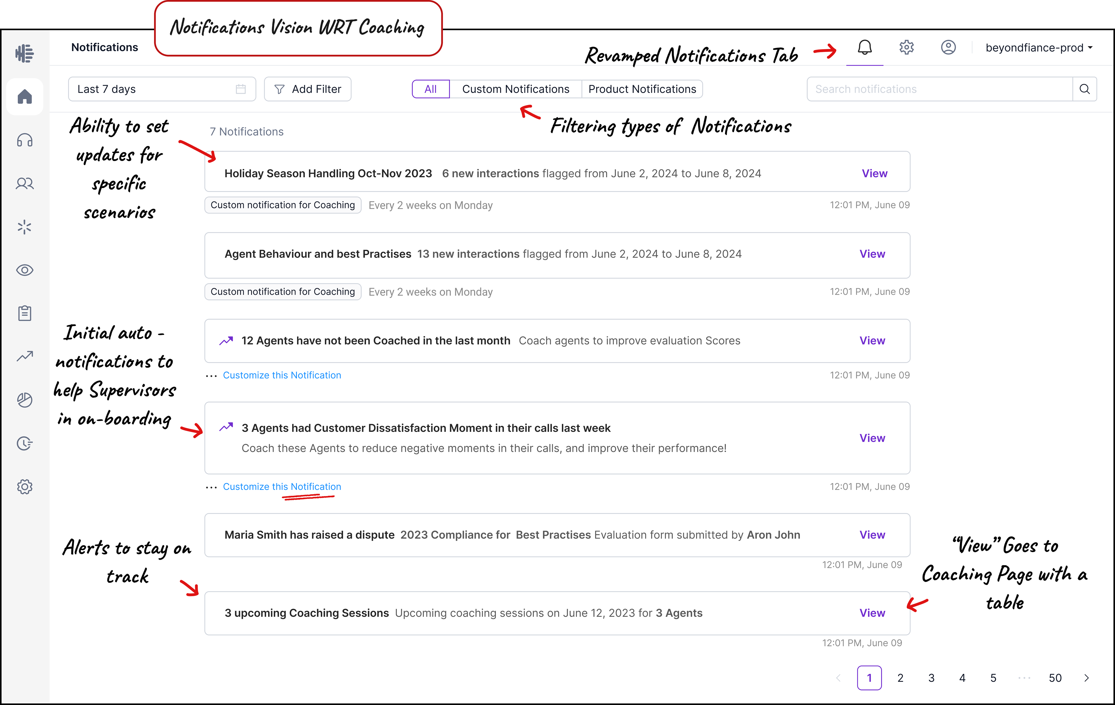 An important under-utilized potential was the impact of Notifications on the Supervisor's Workflow. This revamp of the Notifications system of the product was to shift from Coaching being a secondary feature to a pro-active space of actionable insights.