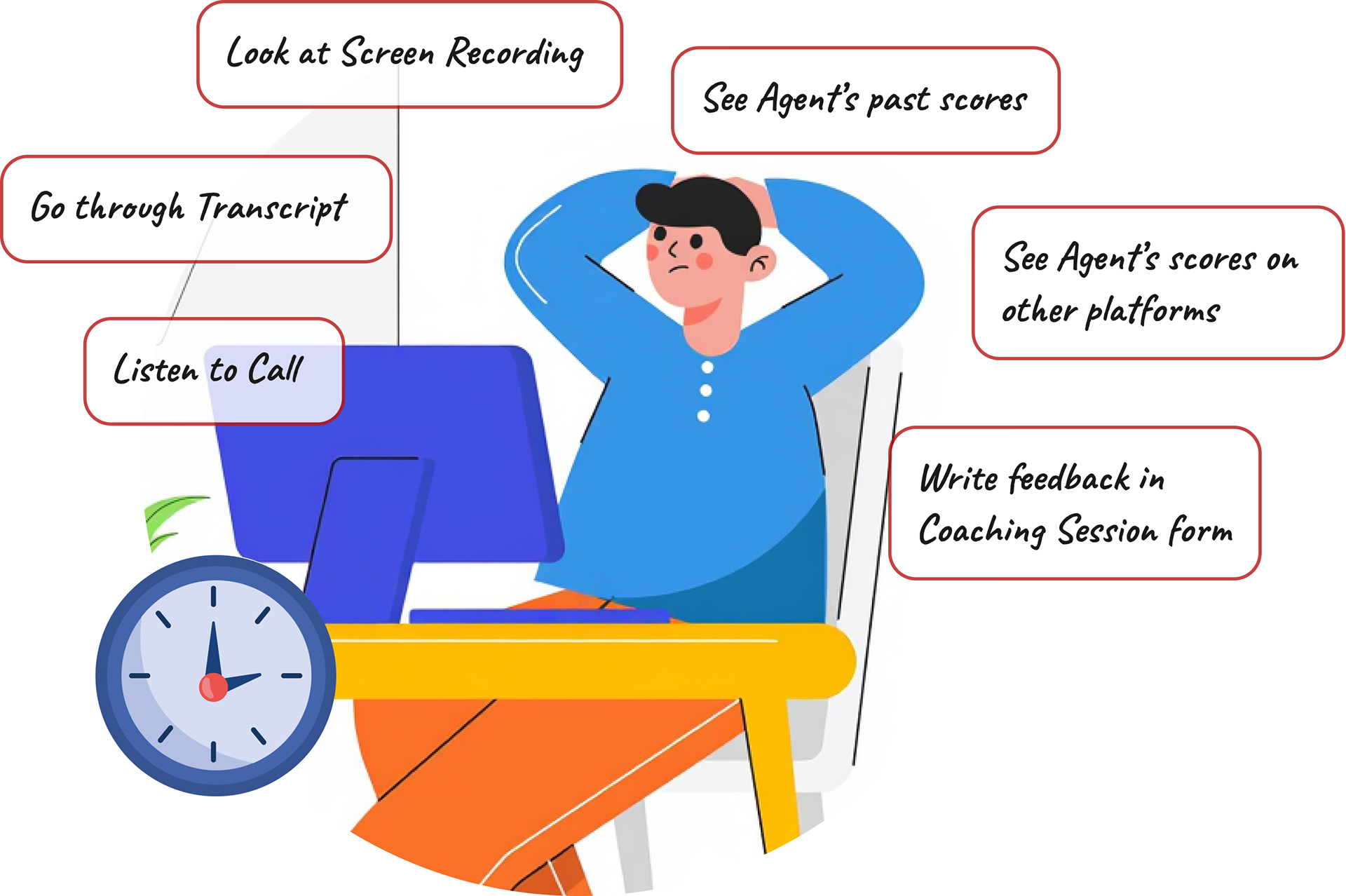 Currently, Supervisors spend 38 mins on average going through singular calls, and identifying points to coach one agent on.